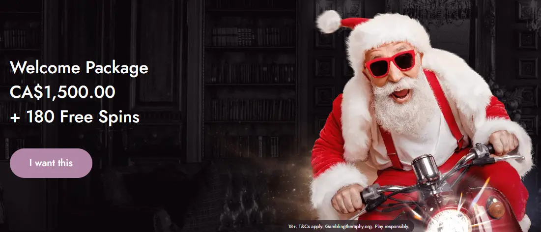 - Welcome Package (3 deposits): Up to C$1,500 + 180 Free Spins total; minimum deposit C$20; wagering 40x.
